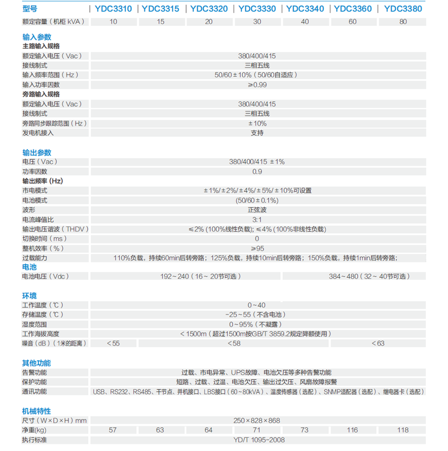 科士达YDC9110H UPS电源 10KVA主机 8KW 外接科士达蓄电池