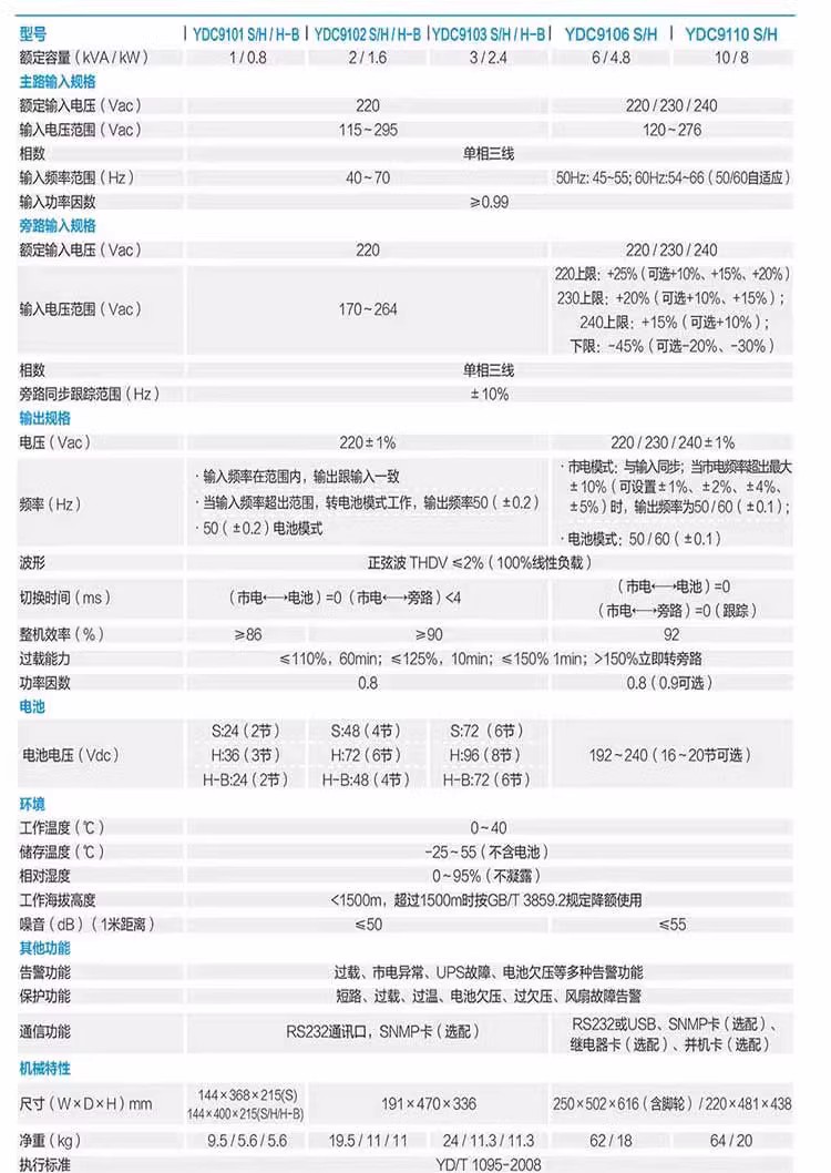 科士达YDC9110H UPS电源 10KVA主机 8KW 外接科士达蓄电池